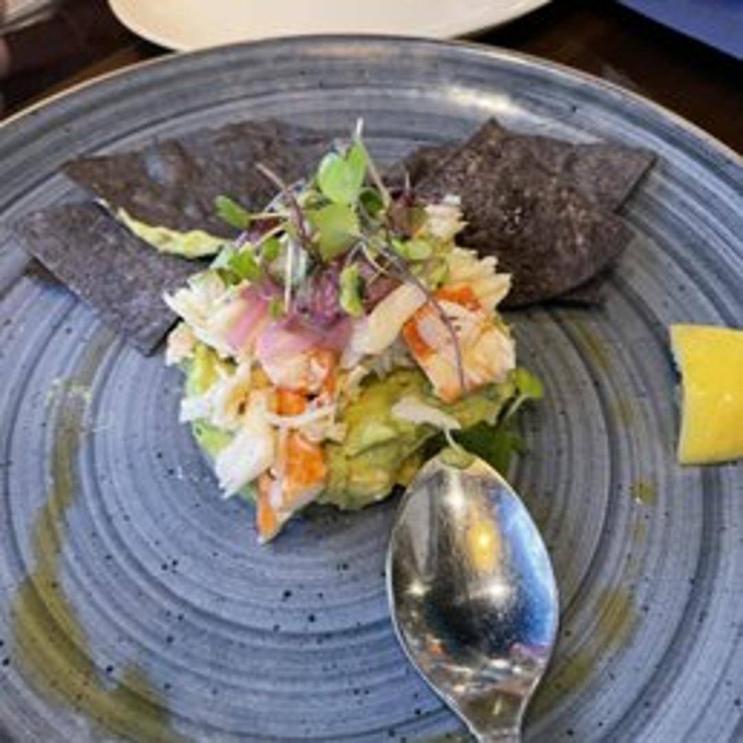 An indulgent blend of fresh, ripe avocados mashed to perfection, infused with succulent chunks of wild-caught lobster and sweet lump crab meat. This luxurious guacamole is seasoned with zesty lime, crisp red onion, aromatic cilantro, and a hint of jalapeño for a subtle kick, creating a vibrant and rich dip that elevates the classic. Served with warm, crispy tortilla chips for scooping.