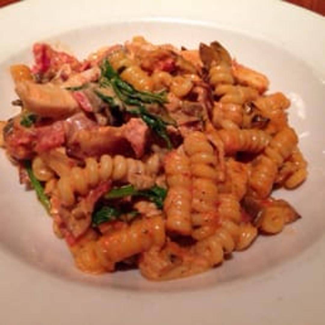 Savor the robust flavors of our Chicken Pasta Rossa. Al dente pasta is generously tossed with succulent pieces of chicken and a vibrant, savory 'Rossa' (red) sauce, expertly seasoned with aromatic herbs and spices to create a comforting and flavorful Italian-inspired classic.