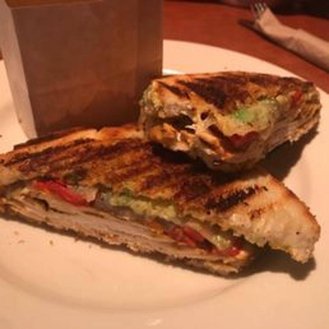 An exciting and flavorful panini inspired by Southwestern cuisine, featuring grilled chicken breast paired with zesty spices, often including ingredients like Monterey Jack cheese, roasted peppers, and a smoky chipotle or Santa Fe-style sauce. All components are pressed within crusty bread for a warm, savory, and slightly spicy experience.