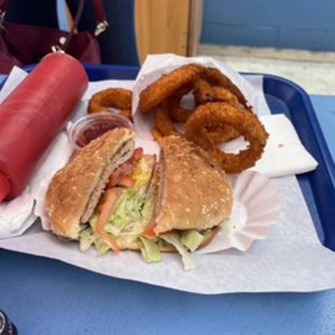 A juicy, lean turkey patty grilled to perfection and served on a toasted bun with your choice of fresh toppings, including lettuce, tomato, onion, pickles, and Marty's signature sauce.