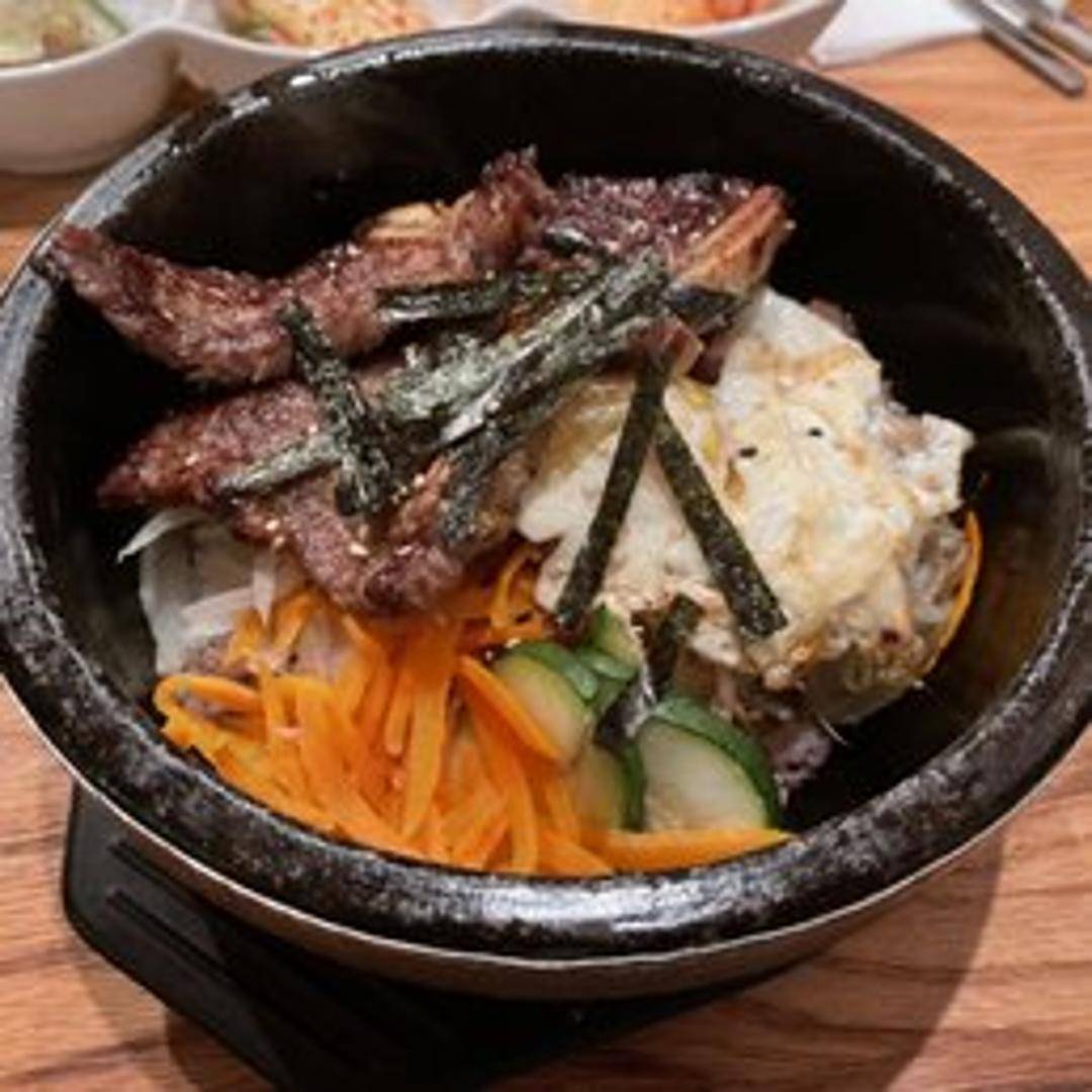 A sizzling Korean culinary experience featuring marinated and grilled beef short ribs (Galbi), served artfully in a traditional hot stone pot (Dolsot). The pot keeps the dish warm and allows the rice, often placed at the bottom, to develop a delightful crispy crust, usually accompanied by various fresh vegetables and an egg.