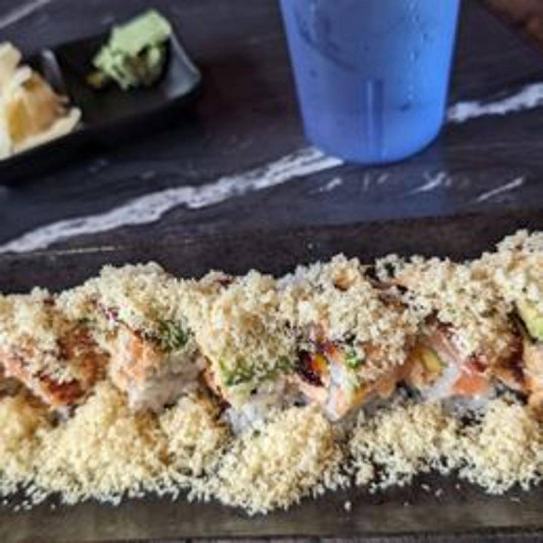 A popular sushi roll known for its crispy texture. Usually contains tempura flakes for crunch and typically includes shrimp tempura and avocado. May also have other fillings such as cucumber or crab meat. Served with a sweet sauce.