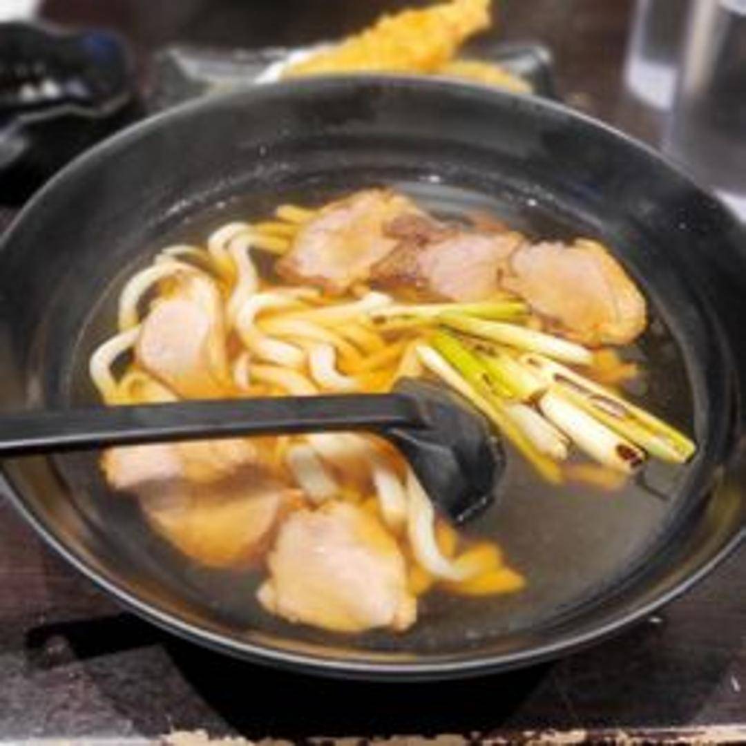 Hearty udon noodles served in a flavorful broth, topped with tender slices of roasted duck. Often features scallions and other complementary ingredients for a well-balanced and satisfying meal.