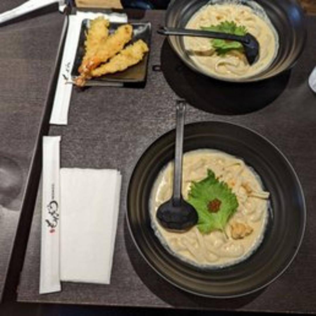 A decadent udon dish featuring thick noodles coated in a creamy, rich sauce. The sauce is often made with dairy, eggs, and seasonings, creating a smooth and luxurious texture and flavor.