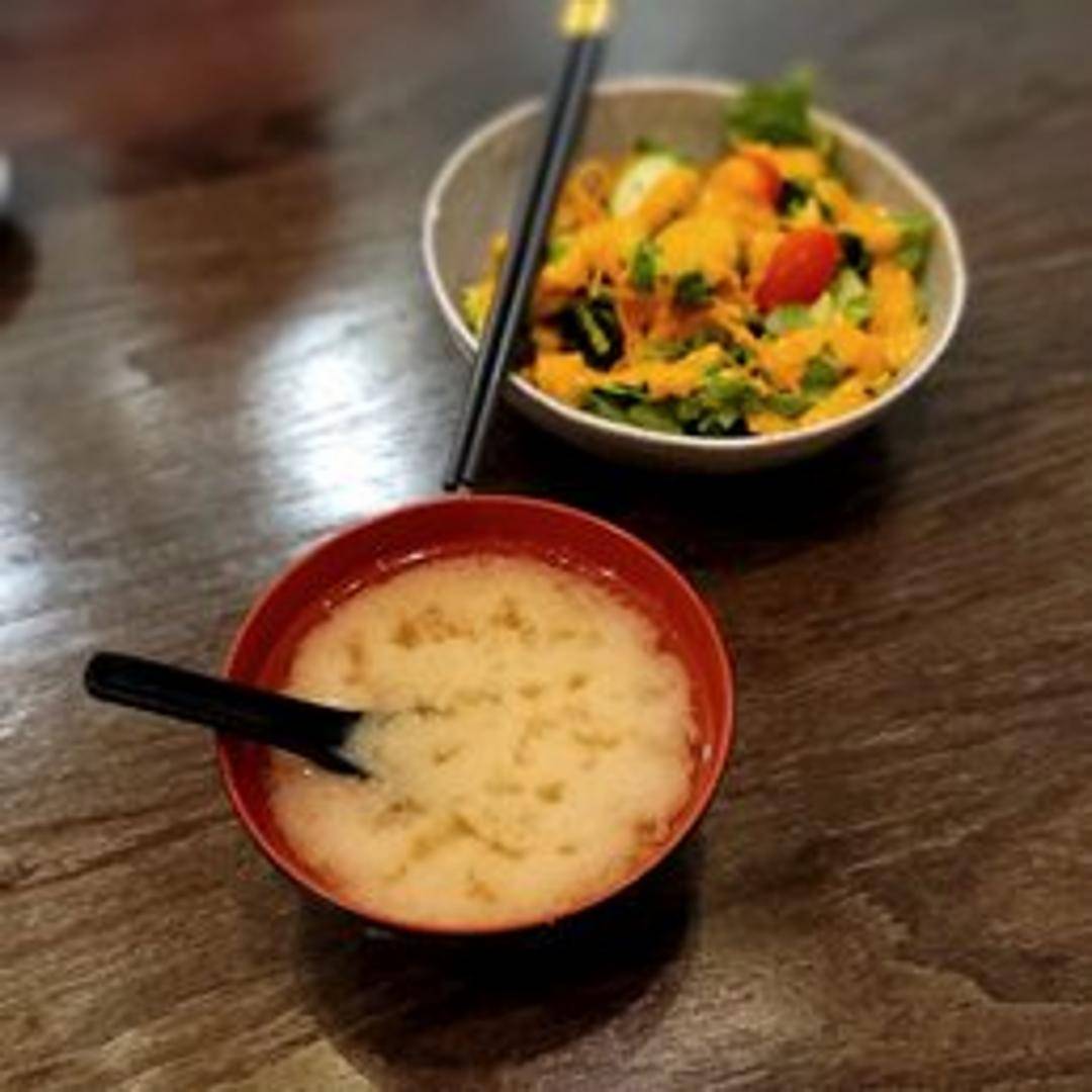 A refreshing salad featuring crisp lettuce, carrots, and tomatoes, topped with a tangy ginger dressing.