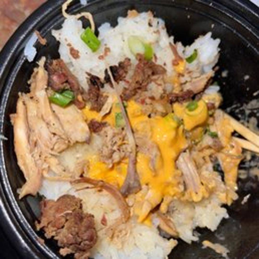 A generous serving of seasoned ground beef simmered in a flavorful sauce. Served over a bed of fluffy steamed rice and garnished with thinly sliced green onions.
