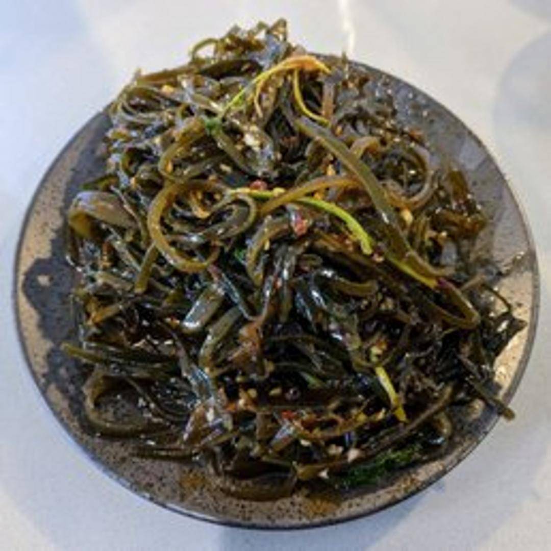 A vibrant and refreshing salad featuring seaweed tossed in a tangy and savory dressing. A light and flavorful side dish.
