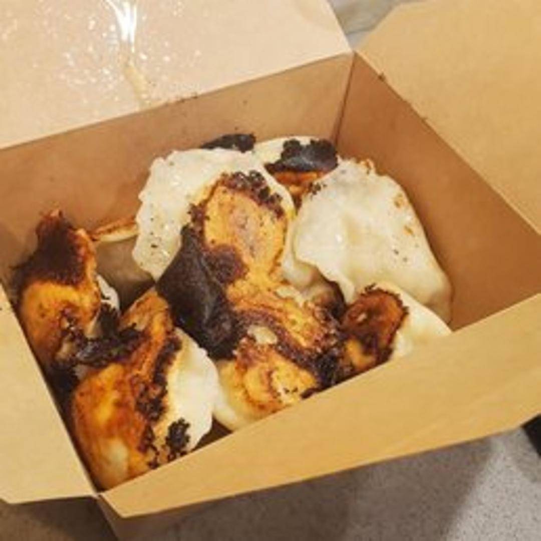 Ten delicious pan-fried dumplings filled with a savory mixture of juicy chicken and crisp cabbage. These dumplings are expertly crafted with a thin, delicate skin that crisps beautifully when pan-fried, offering a delightful textural contrast to the flavorful filling. Served with a dipping sauce.