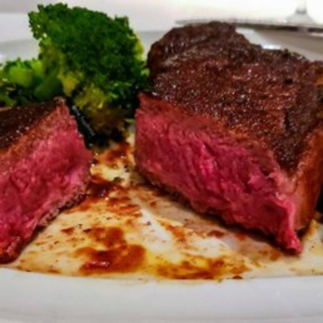 A prime cut of aged USDA Prime New York Strip steak, renowned for its exquisite marbling and robust beefy flavor. Expertly grilled to your desired temperature, it boasts a perfectly seared crust and a tender, juicy interior.
