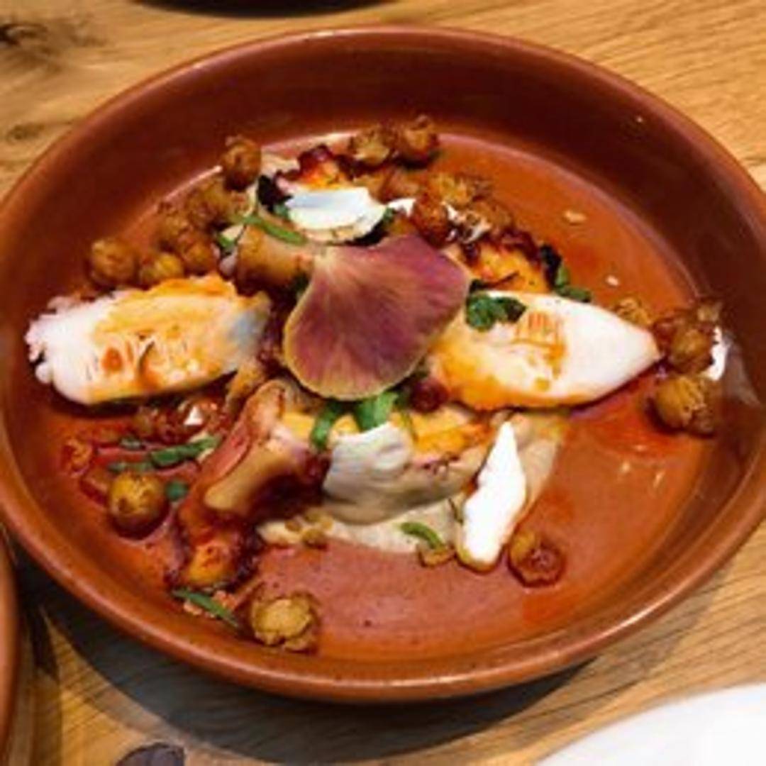 Tender, expertly cooked octopus sourced from Galicia, Spain, known for its superior quality. Charred to create a delightful smoky flavor and served with complementary elements such as potatoes, pimentón (smoked paprika), and olive oil.