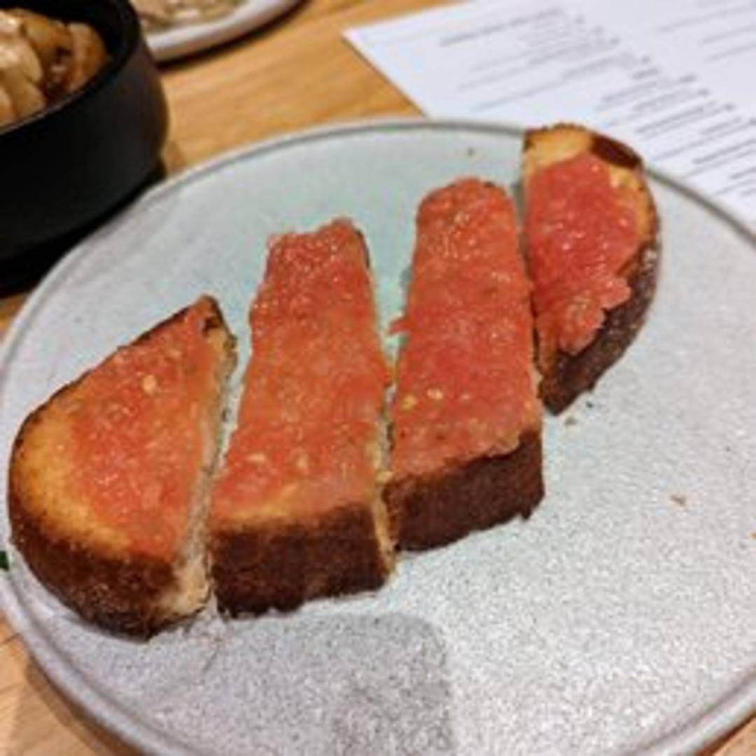 Classic Spanish tapa consisting of toasted bread rubbed with ripe tomatoes and drizzled with olive oil. Often finished with a sprinkle of salt and sometimes garlic for added flavor.
