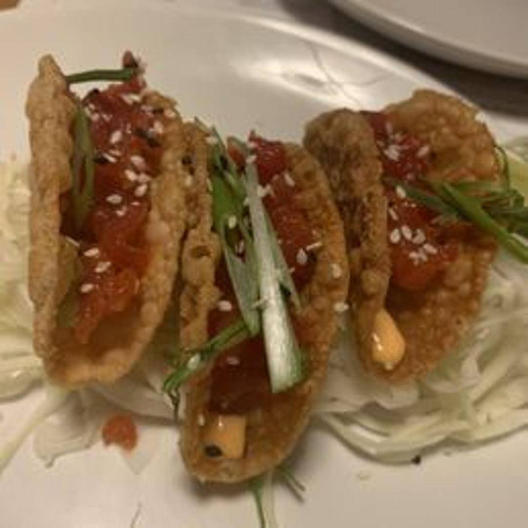 Exquisite sushi-grade Ahi tuna, finely diced and delicately seasoned with fresh herbs, a hint of citrus, and a touch of chili, often layered with creamy avocado. Served elegantly with crispy wonton chips or crostini, perfect for a light and refreshing appetizer.