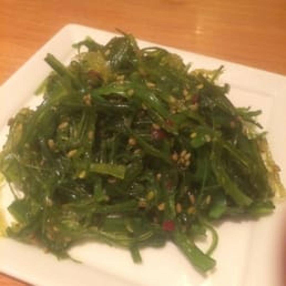 A traditional and healthy Japanese appetizer composed of tender, marinated green wakame seaweed. Seasoned with a delicate balance of sesame oil, rice vinegar, and a sprinkle of toasted sesame seeds, this salad offers a unique umami flavor and a satisfying, slightly chewy texture, perfect for cleansing the palate.