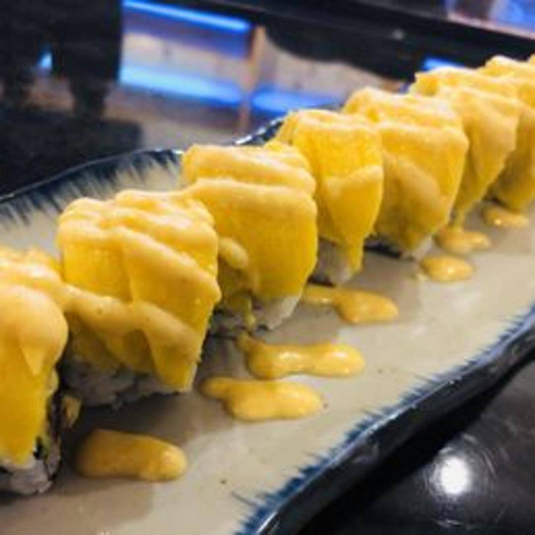 A refreshing sushi roll featuring fresh mango, avocado, and other complementary ingredients, offering a sweet and savory flavor profile. (Specific ingredients may vary).