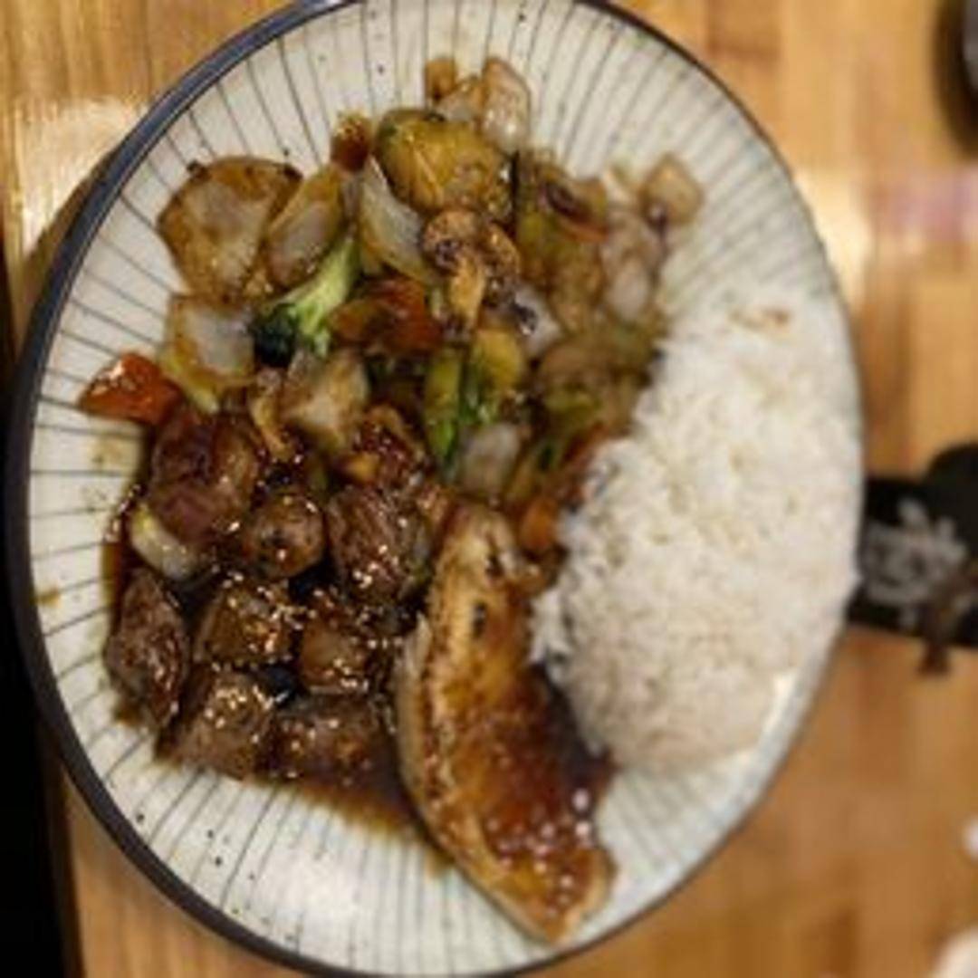 Tender slices of steak cooked hibachi-style with a savory sauce. Served with your choice of rice and vegetables.