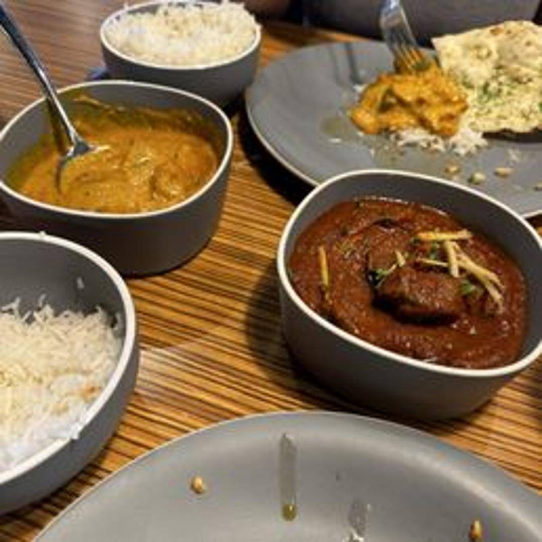 An aromatic Kashmiri lamb curry with a vibrant red color, cooked with yogurt, Kashmiri chilies, and a blend of spices.