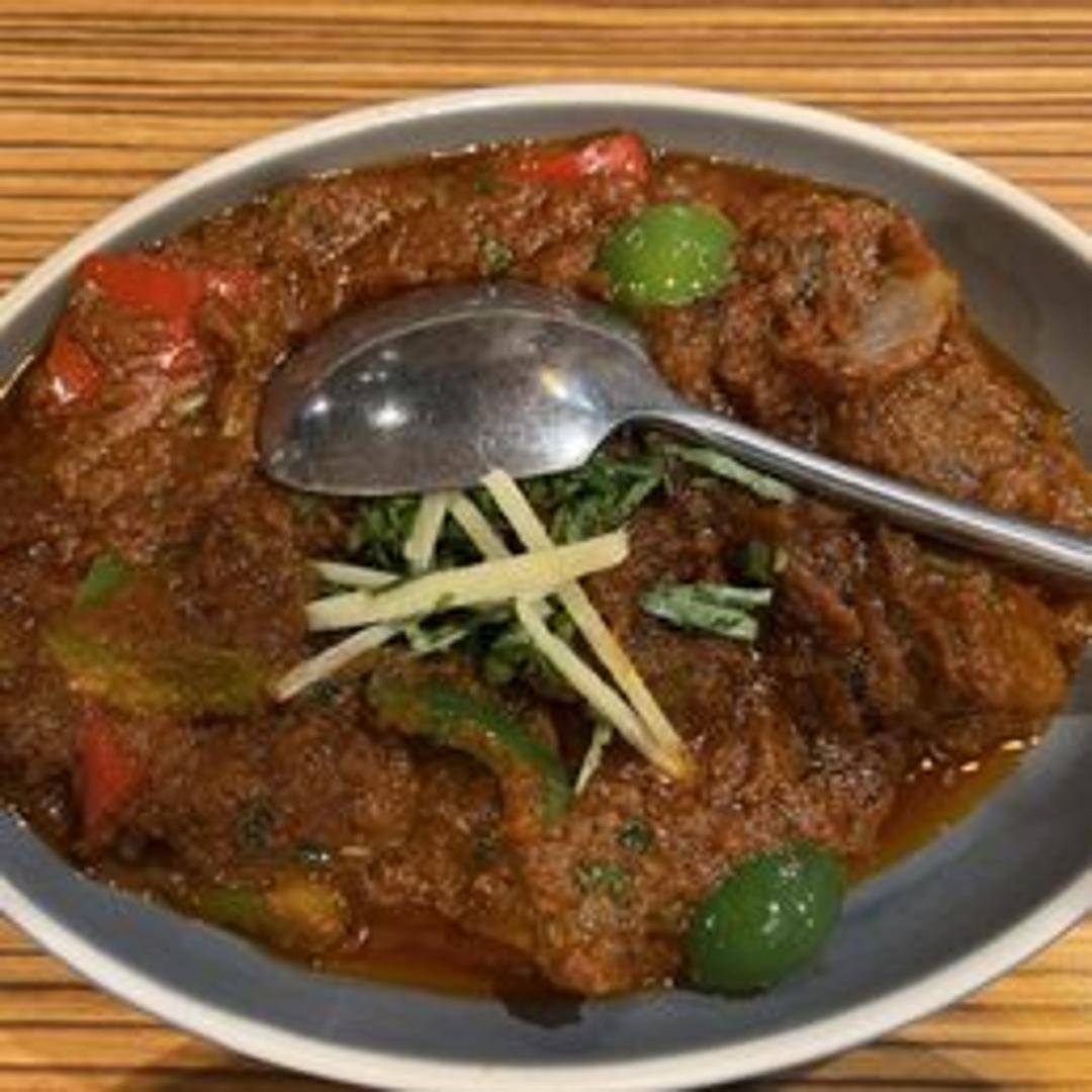 Tender pieces of lamb cooked in a thick, dry masala with onions, tomatoes, ginger, and garlic, resulting in a deeply flavorful and aromatic dish.