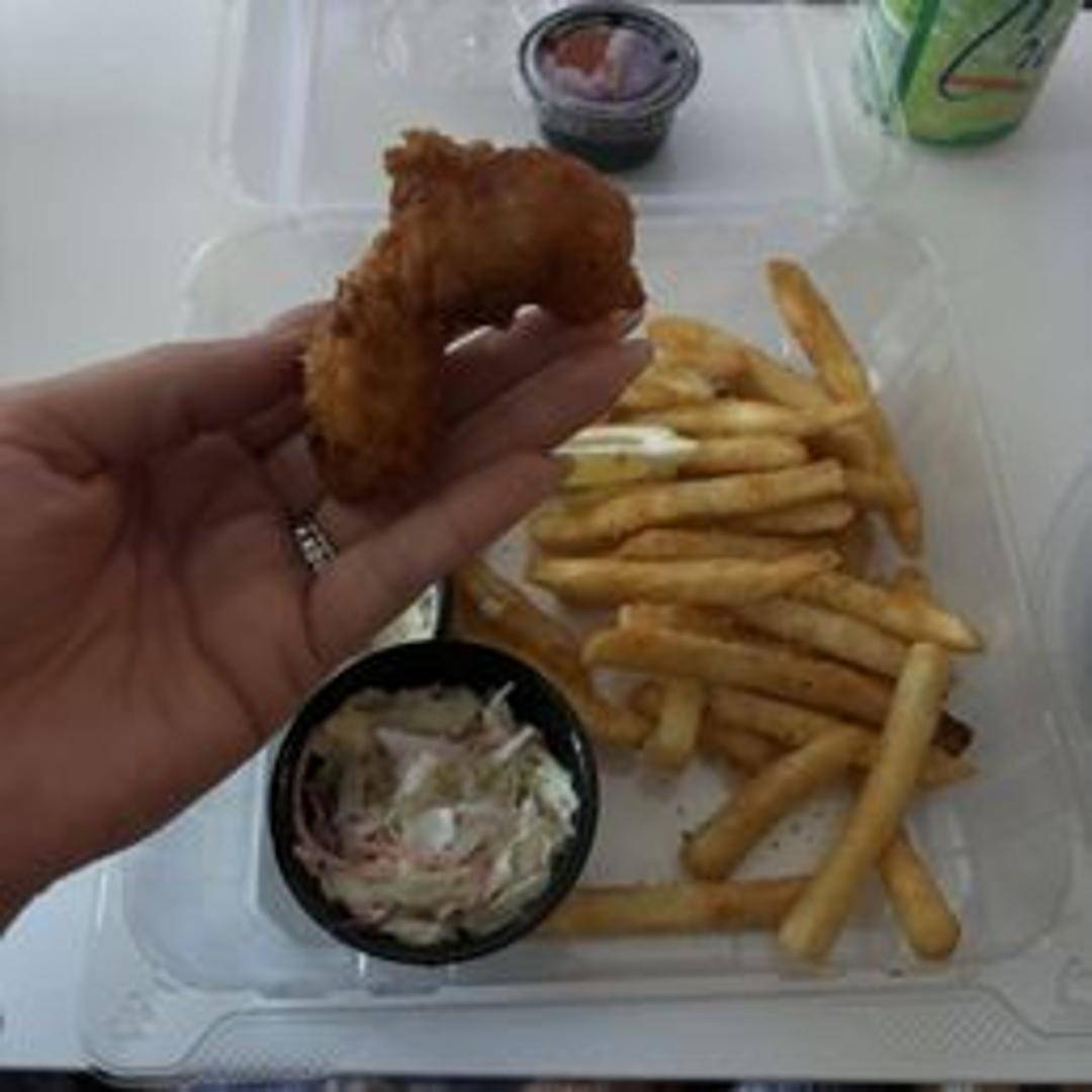 Flaky Alaskan cod fillets, battered and deep-fried to a golden crisp. Served with a generous portion of thick-cut fries, tartar sauce, and [e.g., malt vinegar].