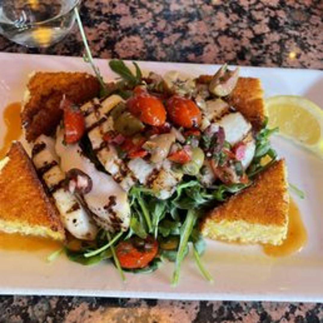 Tender calamari steak, expertly grilled to perfection. Served with [insert sauce/accompaniments here, e.g., a lemon-caper butter sauce, a side of aioli].