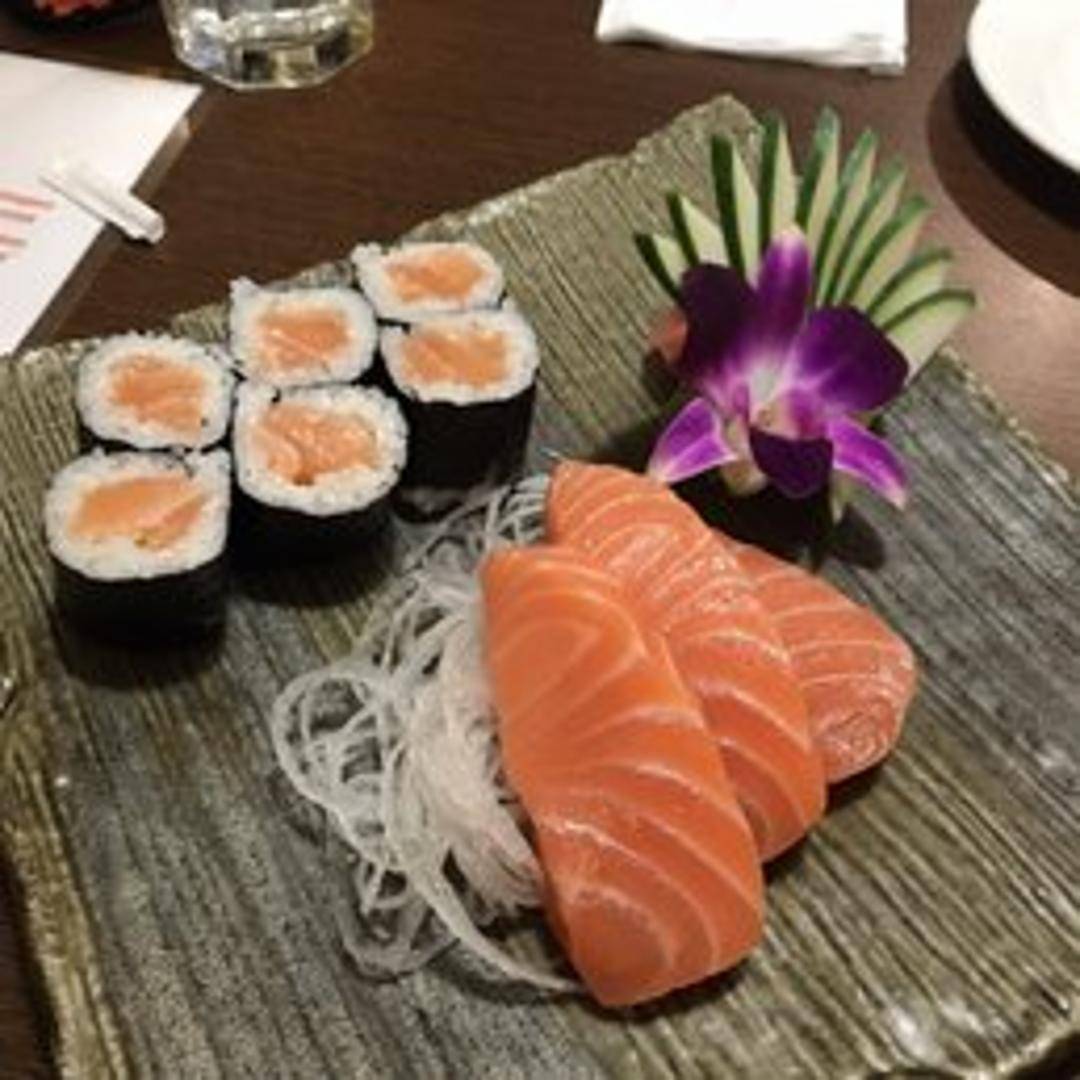 A simple yet delicious sushi roll highlighting fresh, high-quality salmon, typically paired with perfectly seasoned sushi rice and wrapped in crisp nori. Can feature raw salmon, cooked salmon, or include additional ingredients like avocado or cucumber.