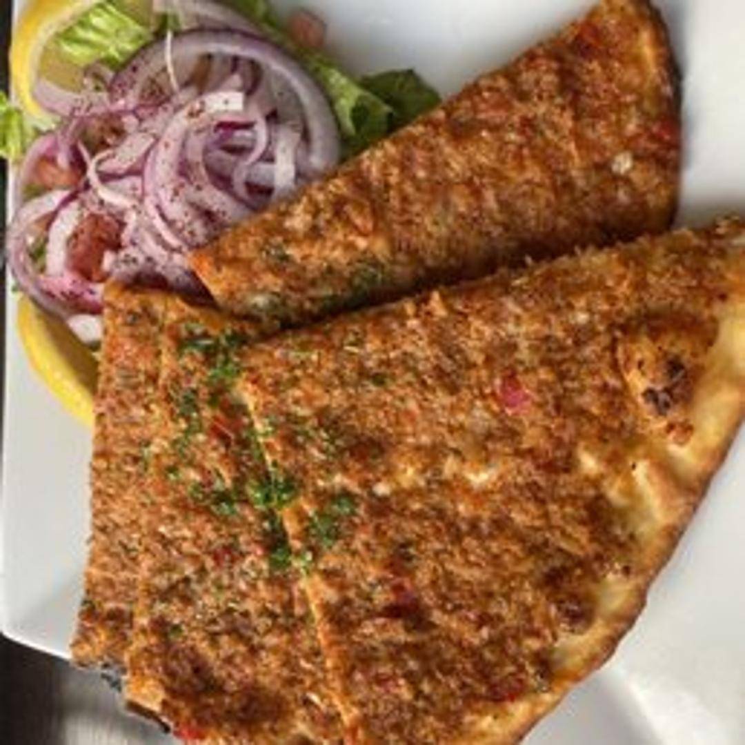 A traditional Turkish flatbread, thinly rolled and topped with a savory mixture of finely minced lamb or beef, ripe tomatoes, sweet peppers, fragrant onions, and a medley of authentic spices. Baked until crisp, it's often enjoyed with a squeeze of lemon and fresh parsley.