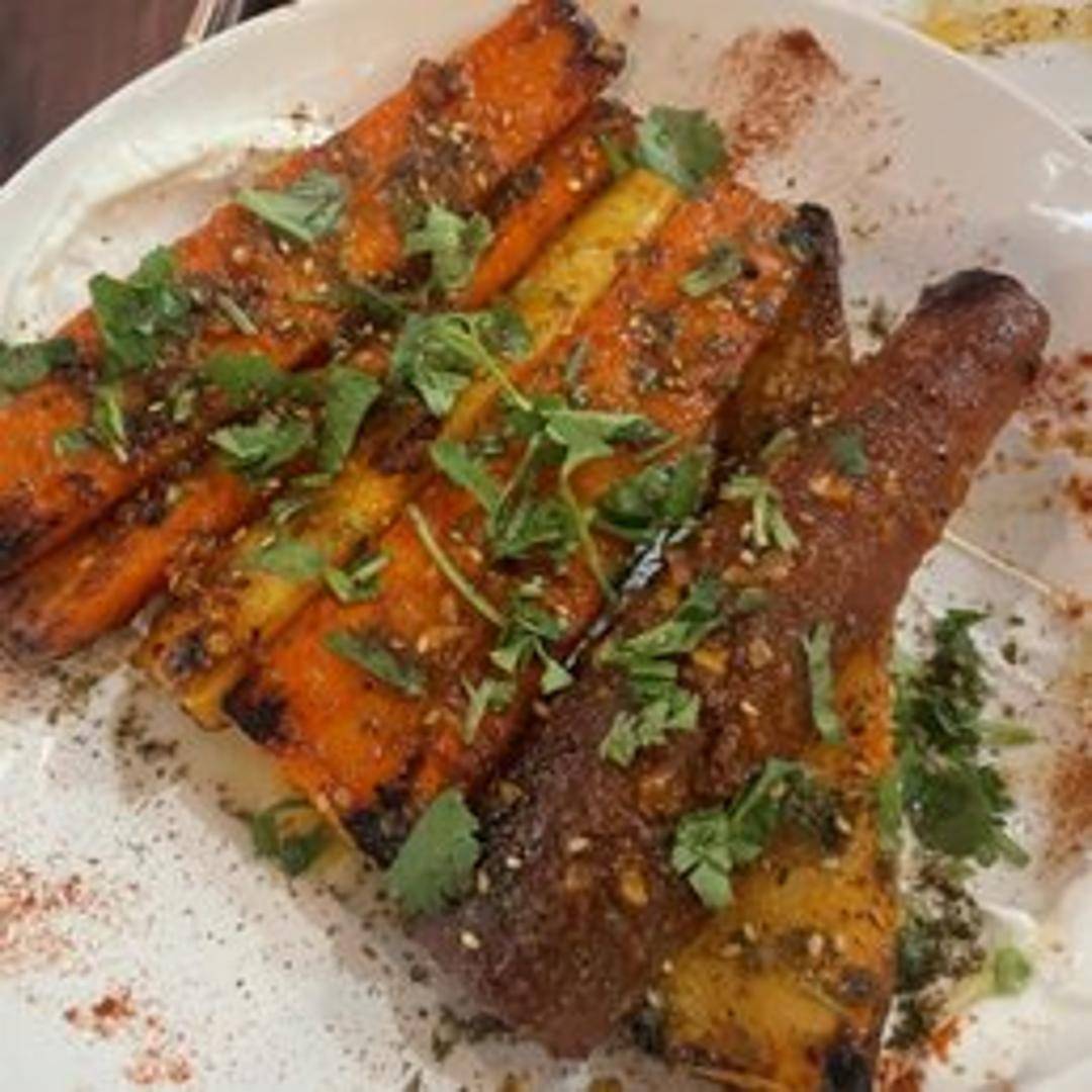 Roasted carrots tossed in a spicy and flavorful harissa sauce, adding a touch of heat and complexity.