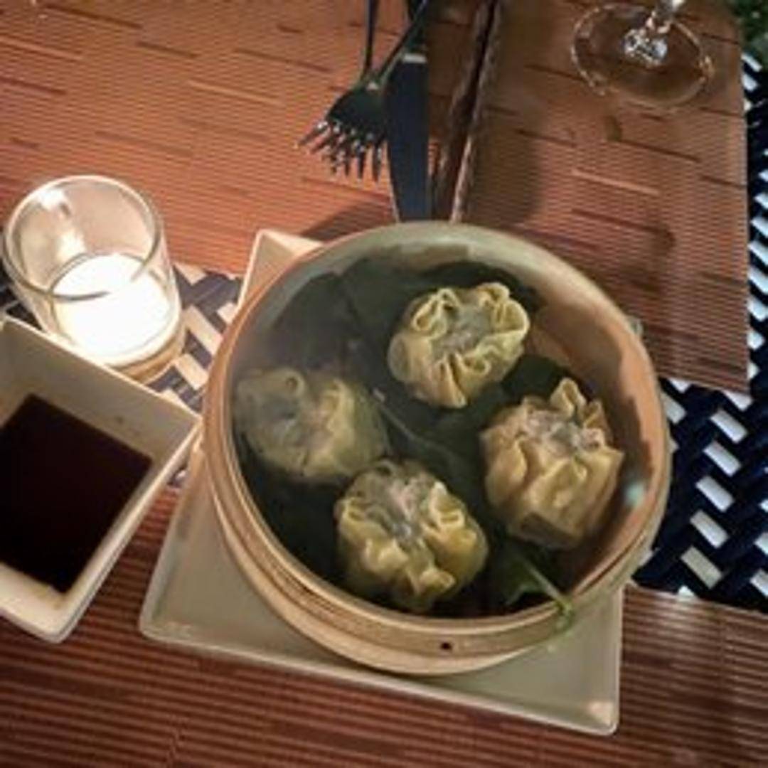 Steamed dumplings filled with a savory mixture of ground pork, shrimp, and vegetables. Often garnished with crab roe or a green pea. Served hot and typically accompanied by soy sauce or chili oil for dipping.