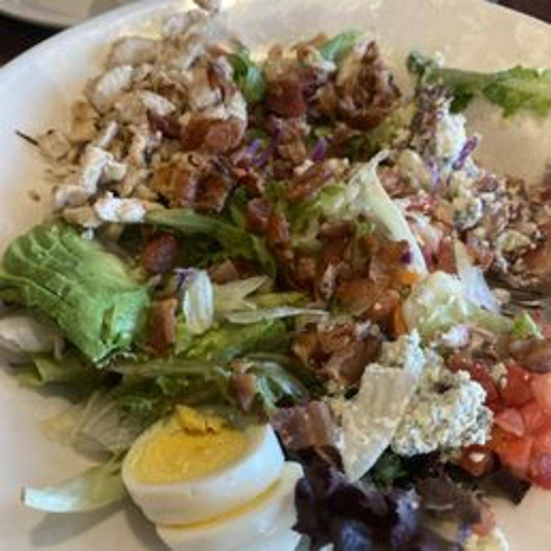 Fresh greens topped with grilled chicken, crispy bacon, hard-boiled eggs, avocado, tomatoes, crumbled blue cheese, and your choice of dressing.
