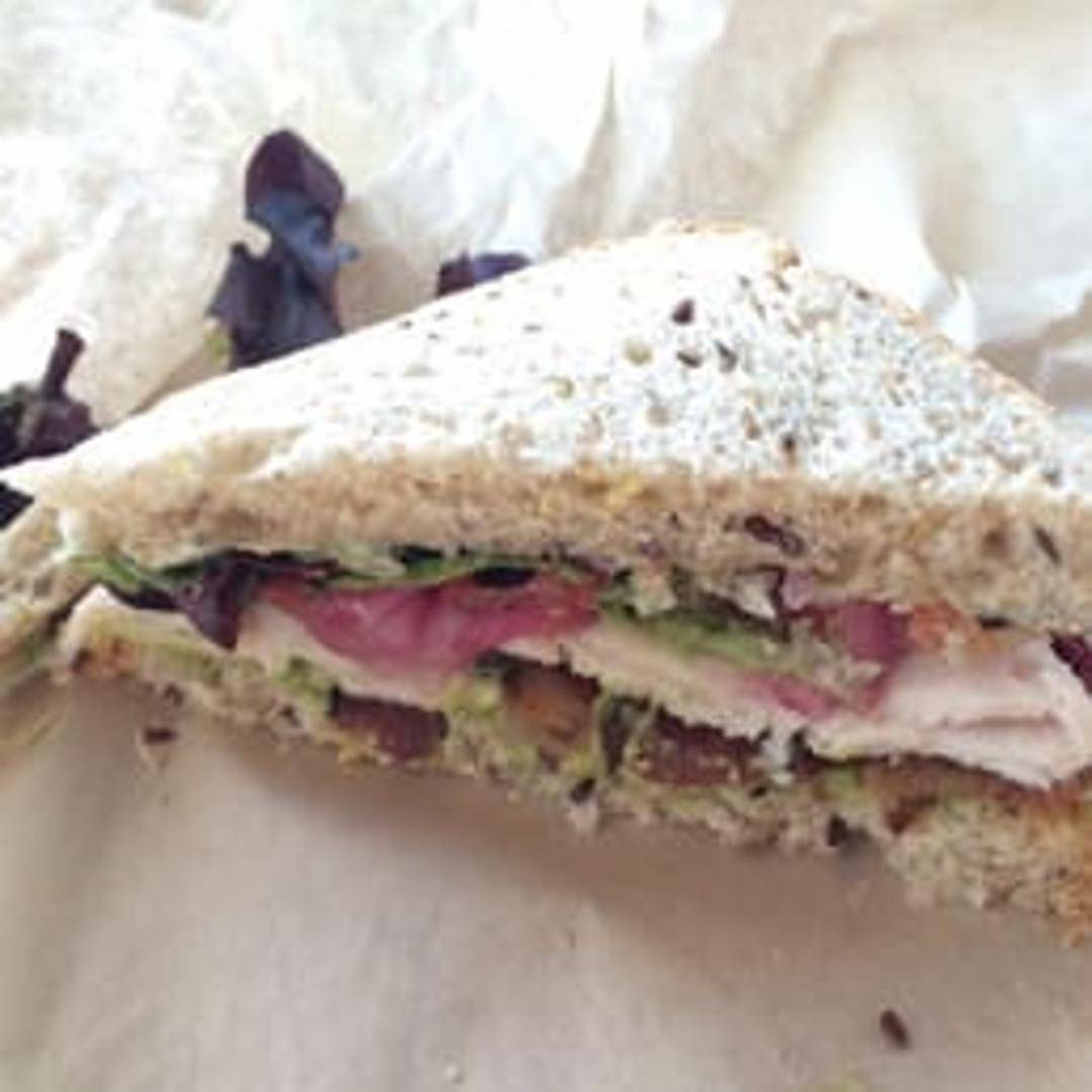 Shaved, roasted turkey breast, smashed avocado, nitrate-free applewood smoked bacon, tomatoes, little gem lettuce with herb aioli on toasted ciabatta.