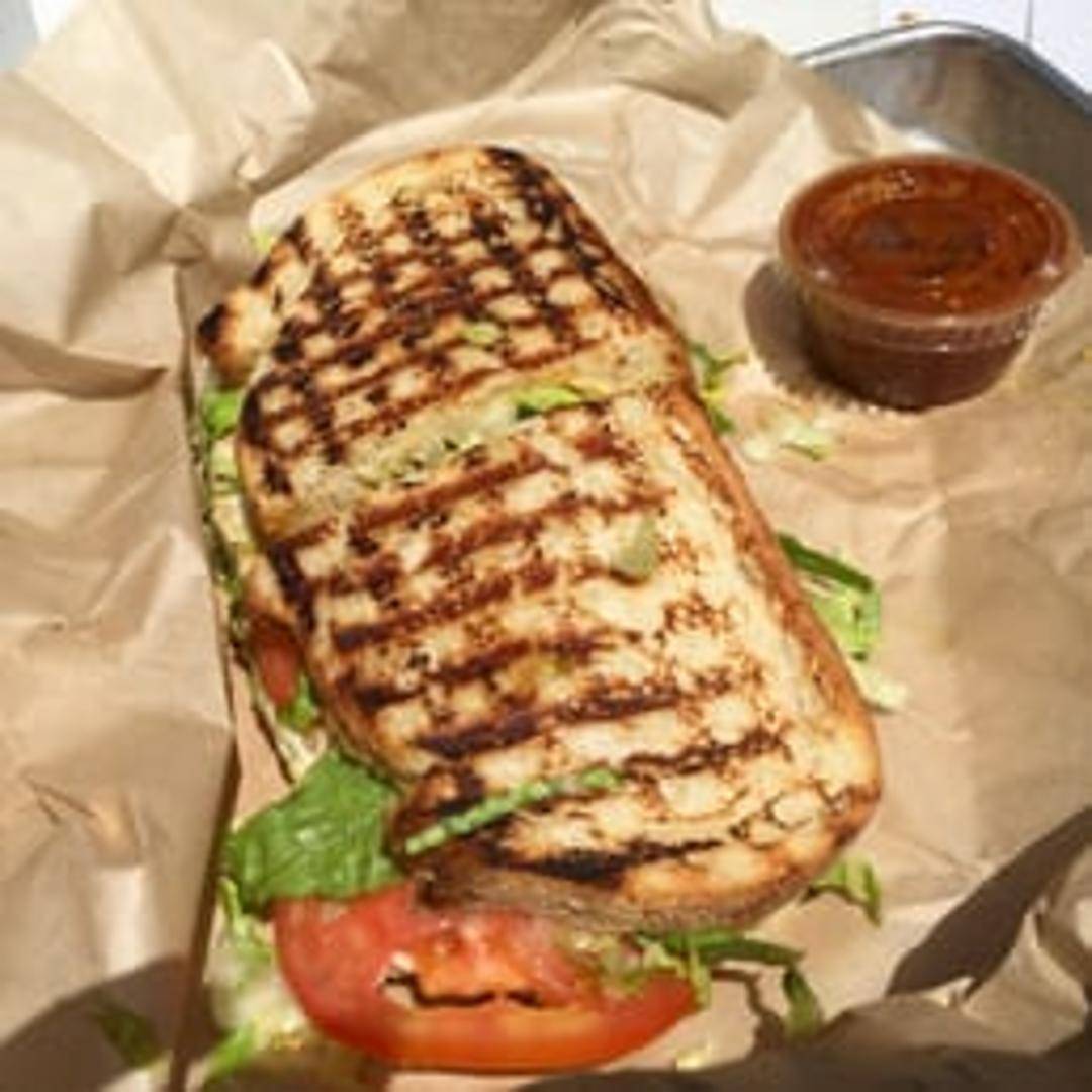 Spicy braised chicken thigh, charred broccolini, Fresno chili aioli, pickled onions, pepper jack cheese and shredded romaine on toasted ciabatta.