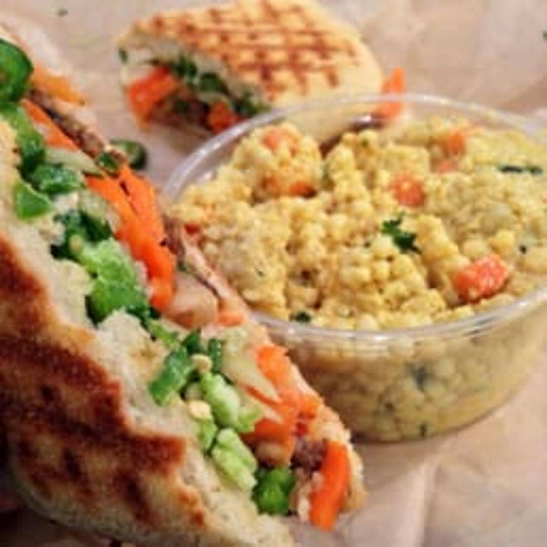 A Mendocino Farms twist on the classic Vietnamese sandwich. Features steak marinated in a spicy lemongrass sauce, layered with housemade pickled daikon & carrots, cilantro, jalapenos, and a spicy aioli, all served on a toasted banh mi baguette.
