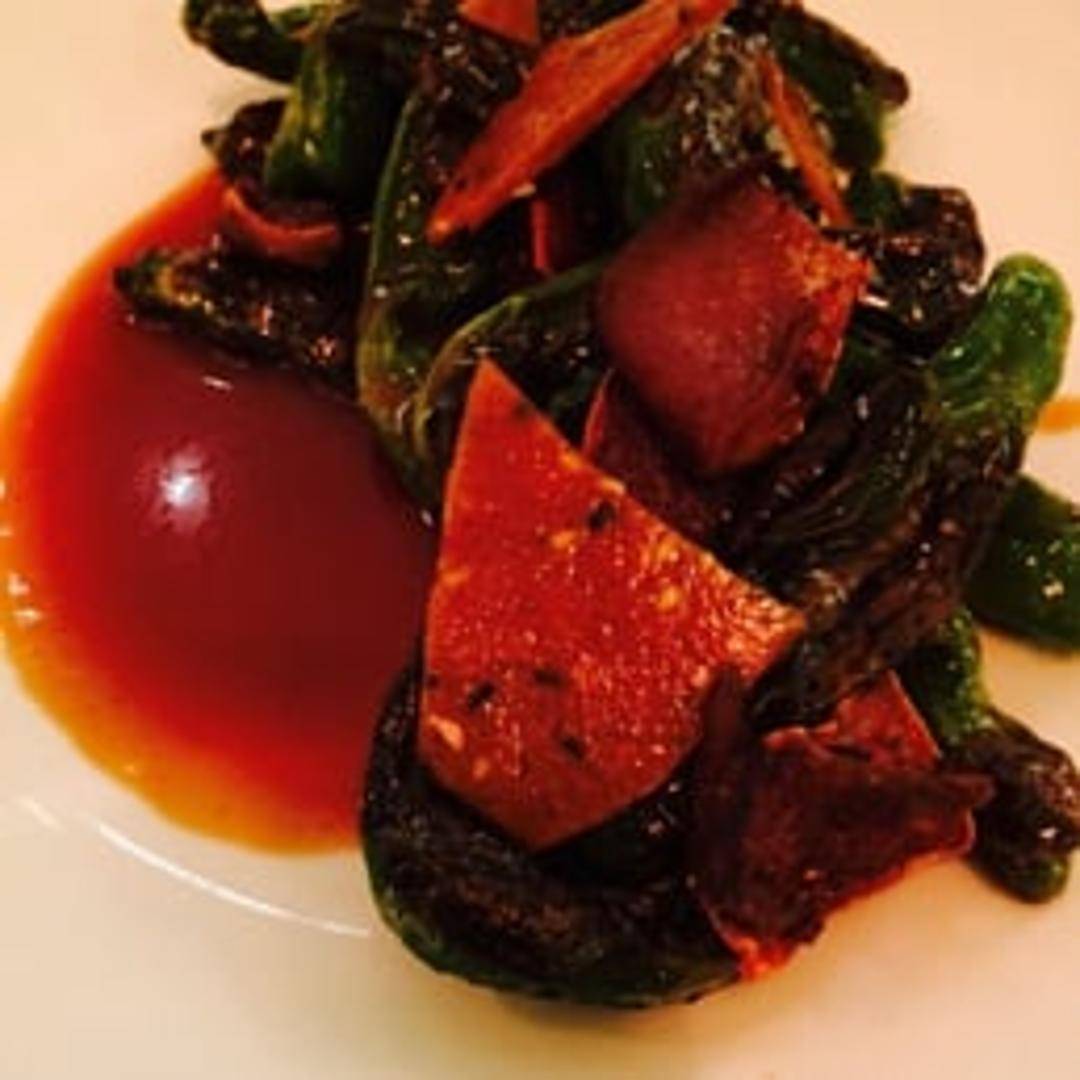 Crispy fried pig ears tossed in a sweet and savory caramel sauce, garnished with sesame seeds and herbs.