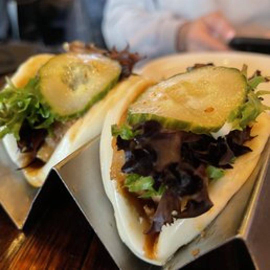 Savor our Barbecue Chashu Buns, a delectable set of two fluffy, steamed bao buns generously filled with tender, slow-cooked pork belly marinated in our signature sweet and savory BBQ chashu sauce. Garnished with a touch of fresh scallions, these buns are a perfect blend of rich flavor and soft texture.