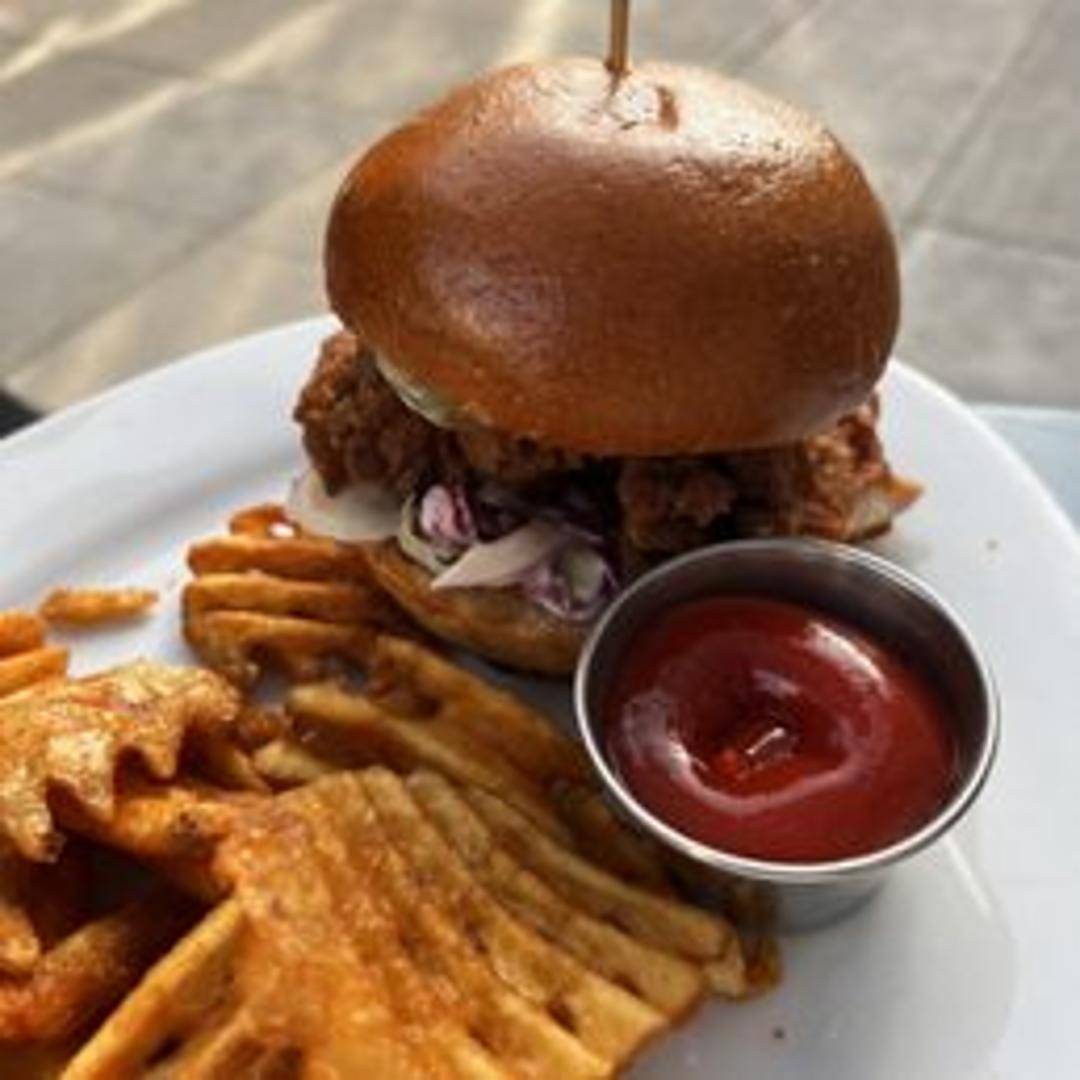 A juicy, crispy fried chicken breast served on a toasted bun with fresh lettuce, sliced tomatoes, and our signature sauce. A satisfying and flavorful handheld delight.