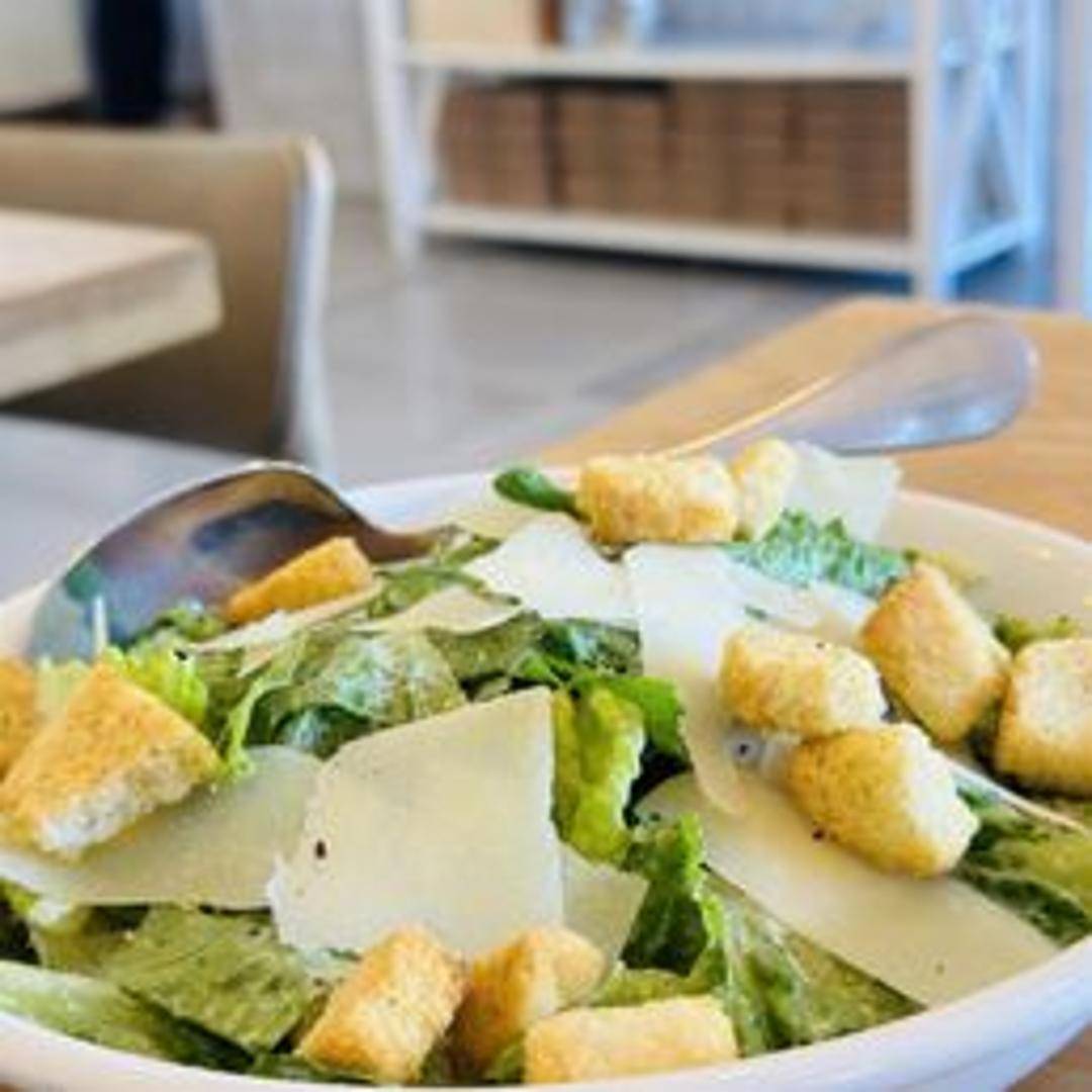 Crisp romaine lettuce tossed in creamy Caesar dressing, topped with garlic croutons and shaved Parmesan cheese. Can be ordered plain, or with chicken or shrimp.