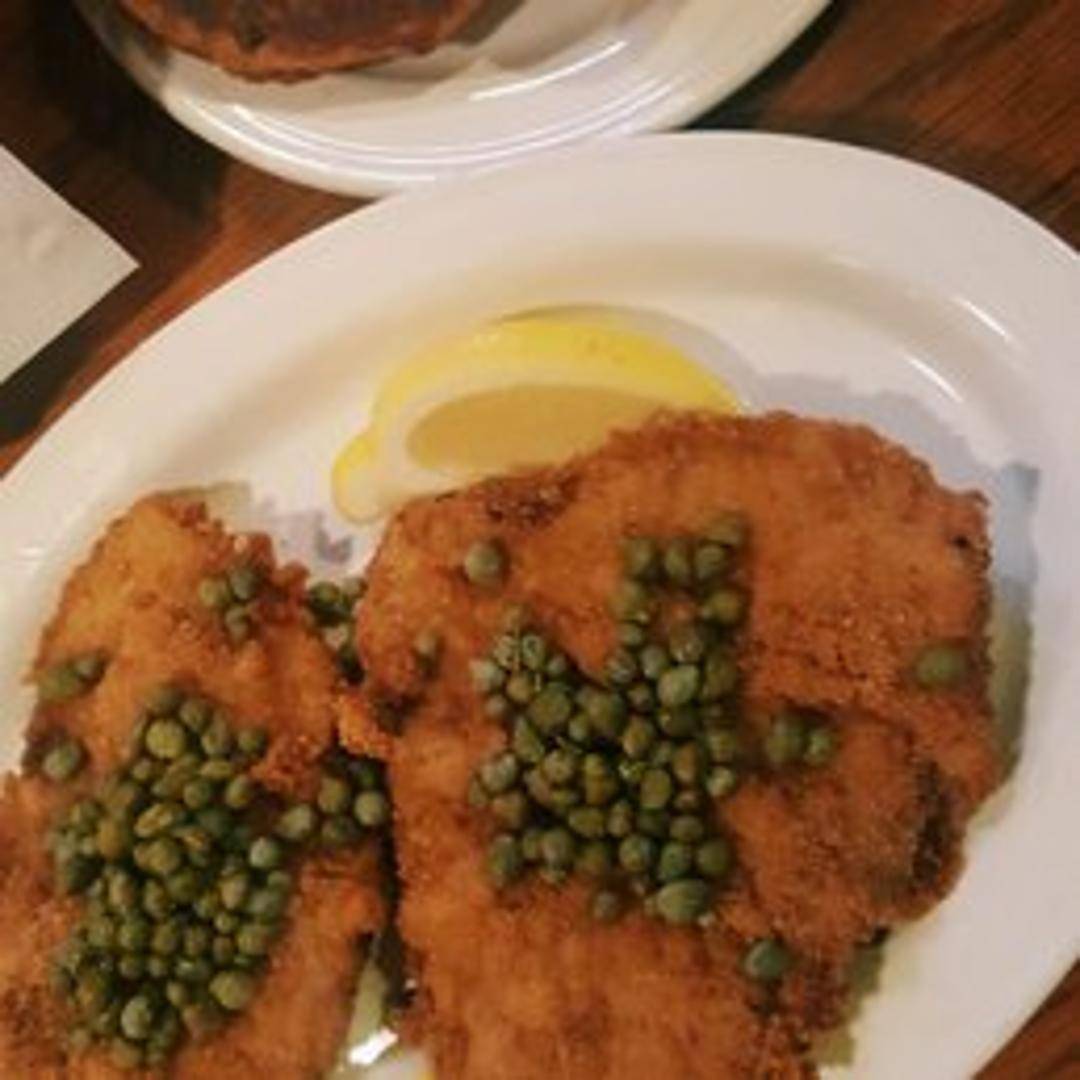 A thin, breaded, and pan-fried cutlet of veal. A classic Viennese dish, served with a lemon wedge.