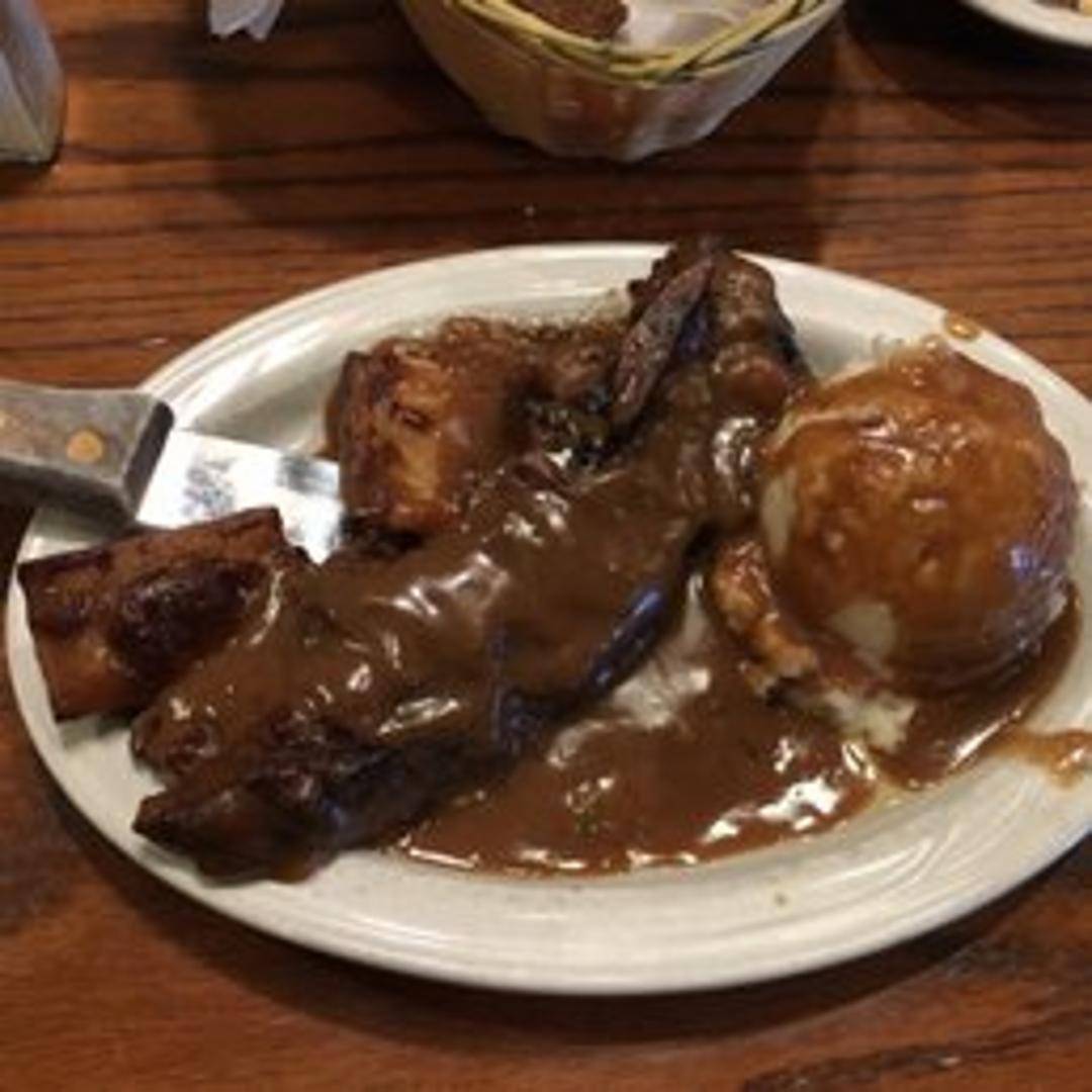 Slow-braised beef short ribs, fall-off-the-bone tender, served with a rich, savory sauce. Accompanied by your choice of two sides.