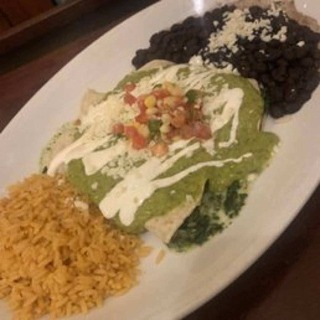 Flavorful corn tortillas generously filled with a vibrant mixture of seasoned spinach, expertly rolled and smothered in a savory enchilada sauce. Baked to perfection and often topped with melted cheese, these enchiladas offer a satisfying and wholesome vegetarian option, typically served with traditional rice and beans.