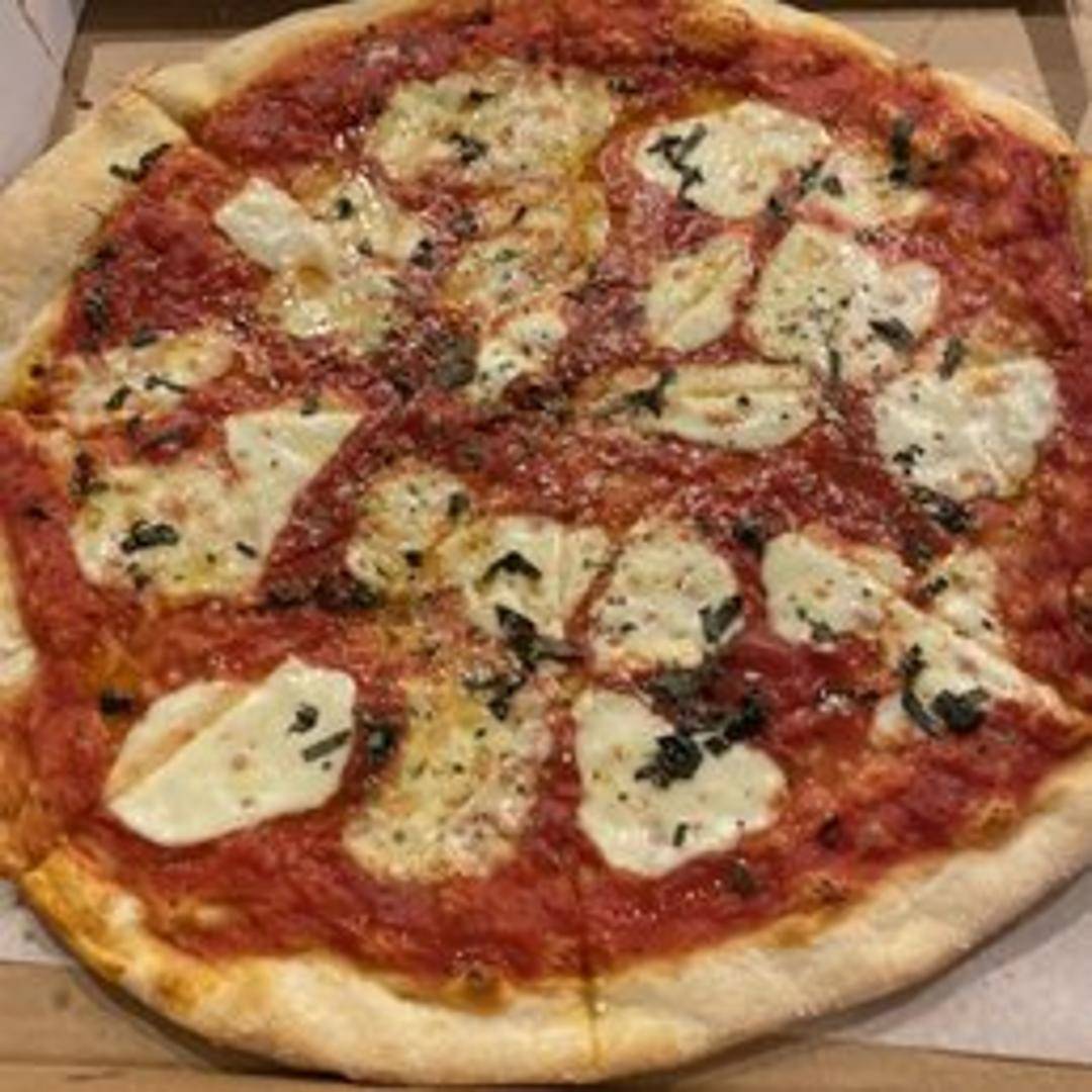 A simple yet satisfying pizza featuring fresh mozzarella, vibrant basil leaves, and a drizzle of olive oil on a bed of our signature tomato sauce, all atop a perfectly baked crust.
