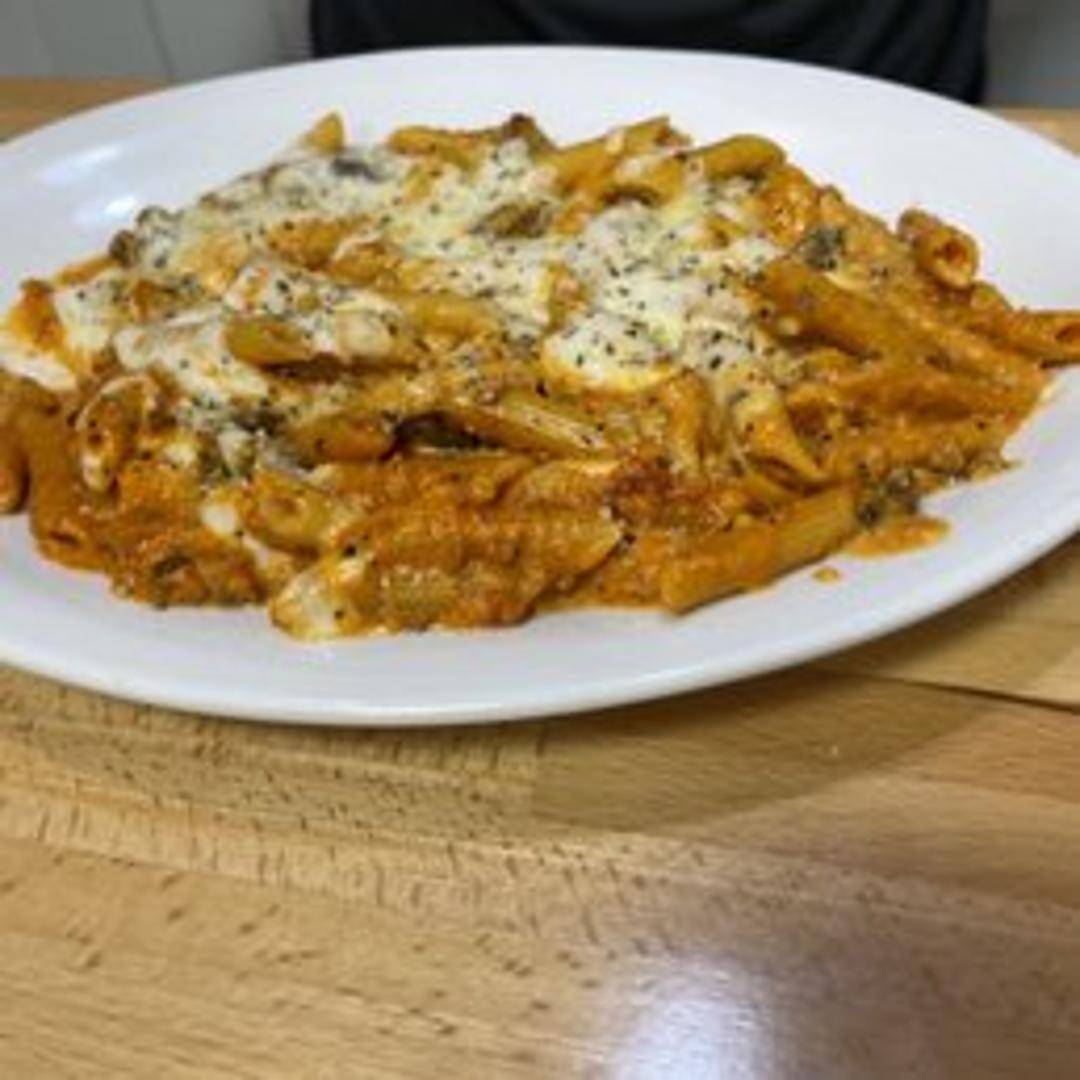 Penne-shaped pasta baked with a rich tomato sauce, ricotta cheese, and melted mozzarella. Available with or without meat.