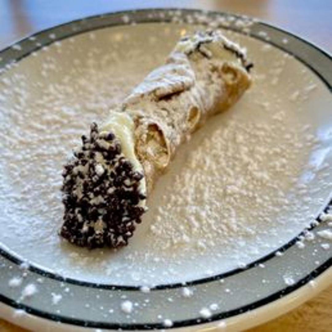 Crispy, tube-shaped pastry shells filled with a sweet, creamy ricotta filling and dusted with powdered sugar. Often garnished with chocolate chips, candied fruit, or nuts.