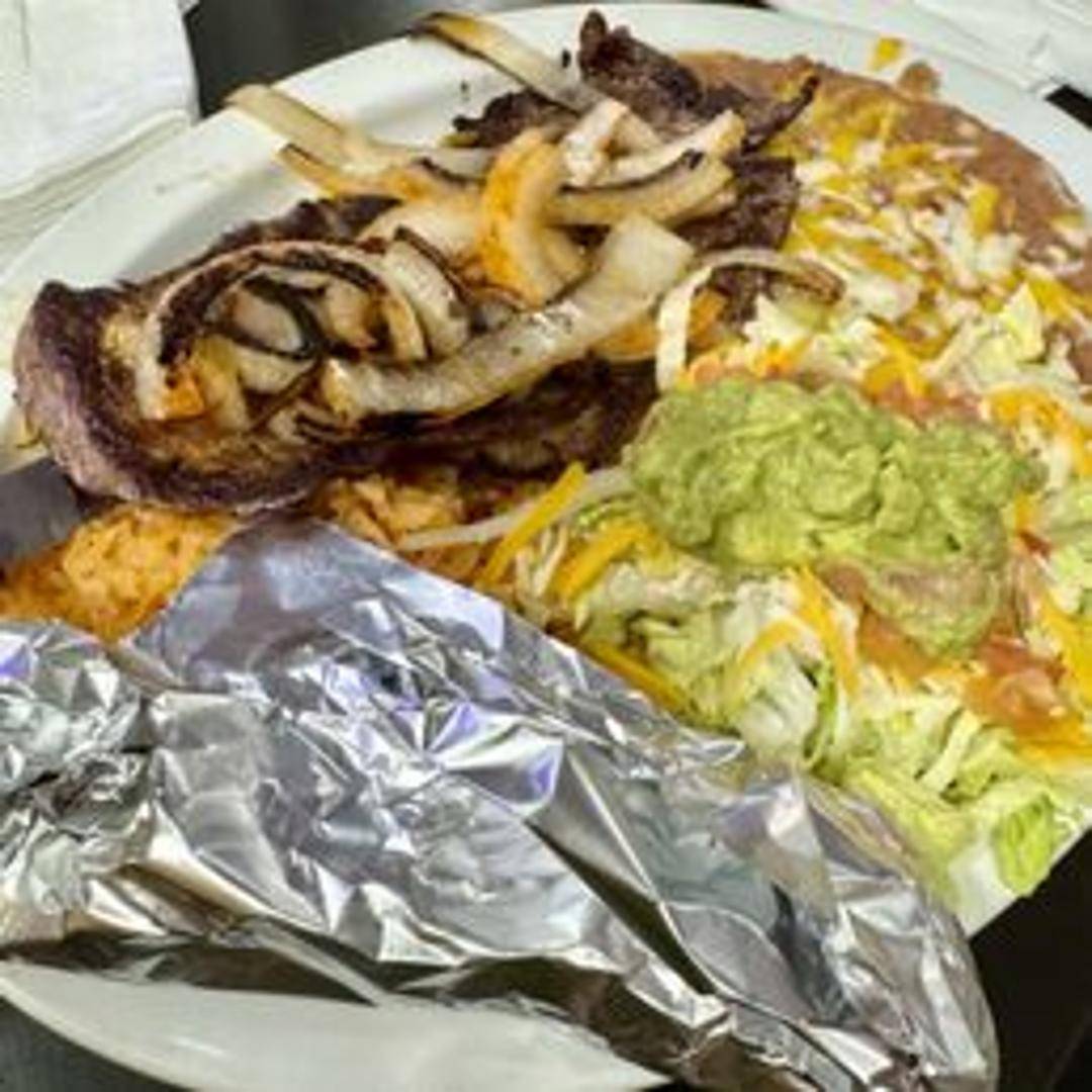 Grilled marinated steak served with rice, beans, guacamole, pico de gallo, and your choice of tortillas.
