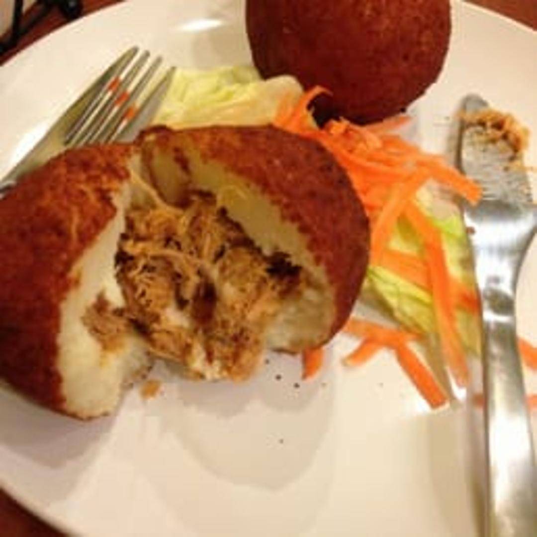 A beloved Cuban classic, our Papas Rellenas are delightful balls of seasoned mashed potatoes, generously stuffed with a savory picadillo (slow-cooked, seasoned ground beef with onions, peppers, and olives). Each sphere is then lightly breaded and deep-fried to a golden crisp, creating a perfect contrast between the crispy exterior and the tender, flavorful interior.
