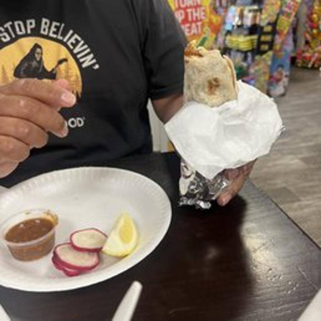 Grilled marinated steak wrapped in a warm flour tortilla with rice, beans, onions, cilantro, and your choice of salsa.
