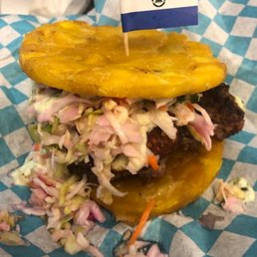 A truly unique fusion creation, the Toston Burger reimagines the classic burger experience by replacing traditional buns with crispy, golden-fried tostones (savory green plantain patties). Enjoy a juicy, seasoned beef patty, fresh toppings, and your favorite condiments, all deliciously sandwiched between these flavorful plantain 'buns' for an unforgettable culinary adventure.
