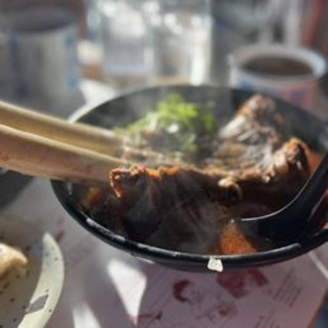 A flavorful and spicy beef broth with tender beef ribs and noodles. A satisfying soup with a kick.