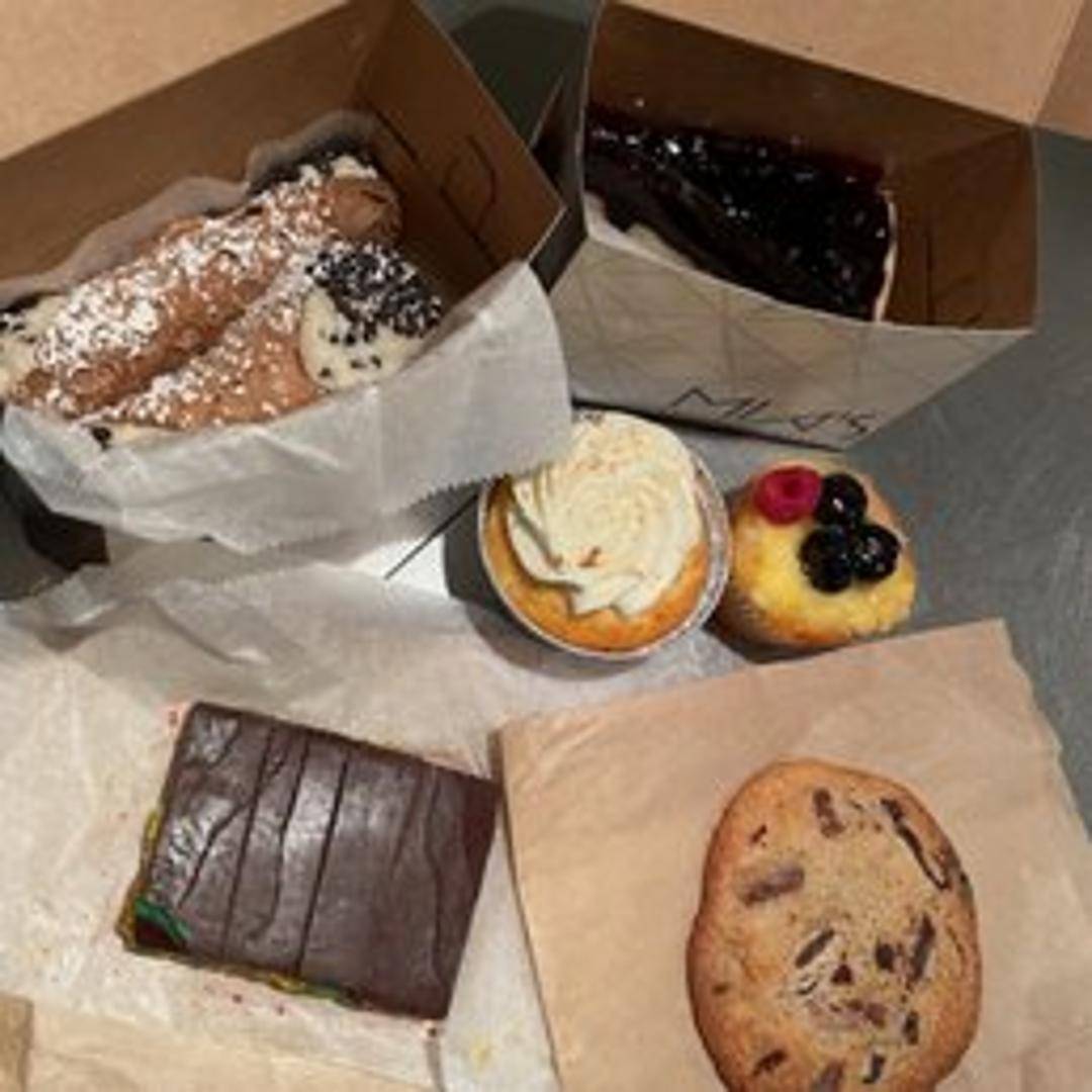 Crispy, tube-shaped shells filled with a sweet, creamy ricotta cheese filling. Lightly dusted with powdered sugar and garnished with chocolate chips and candied citrus.