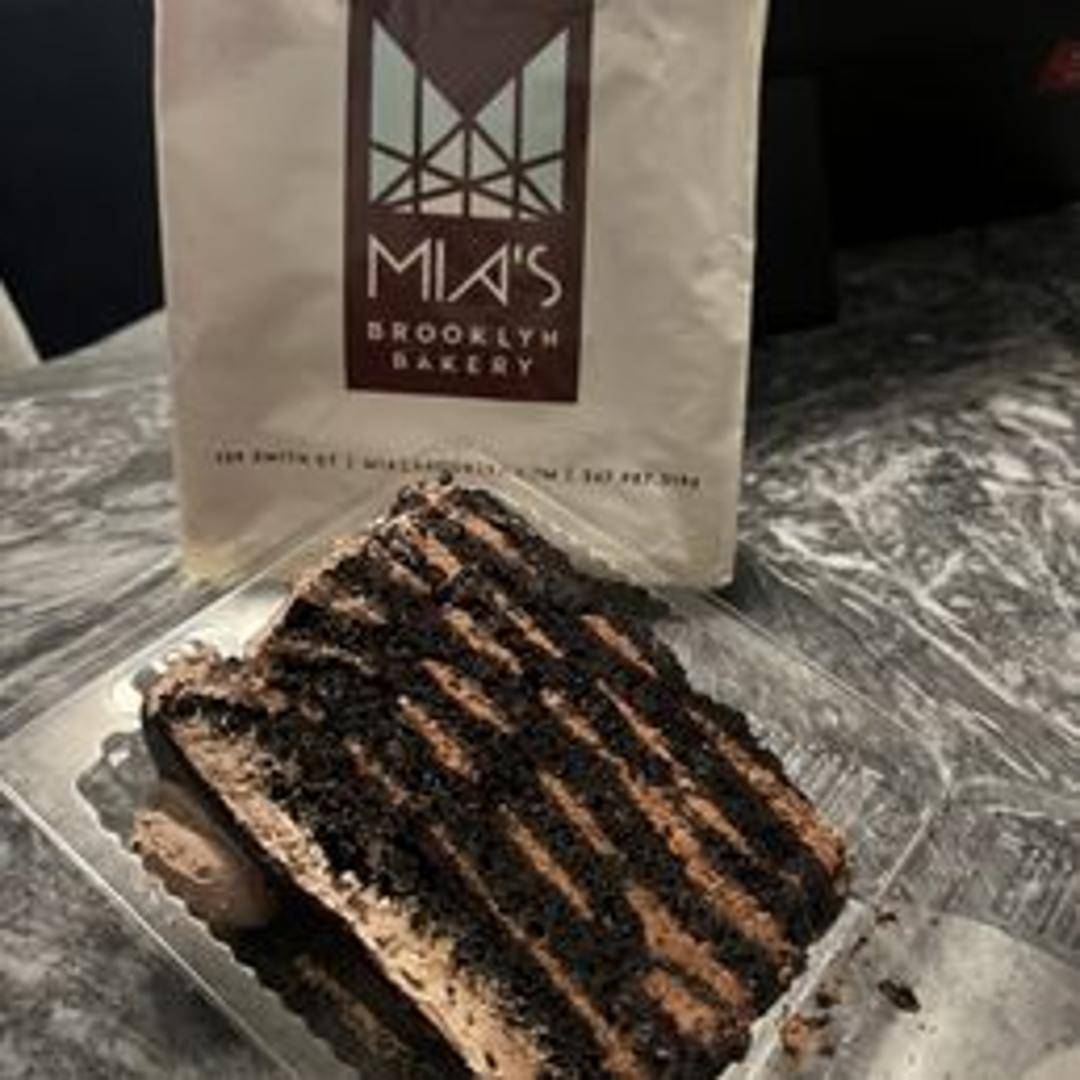 Seven layers of moist chocolate cake, separated by rich chocolate filling. The cake is coated in a smooth chocolate ganache and topped with chocolate shavings.