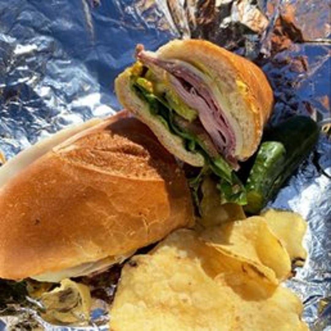 A classic Italian sub filled with mortadella, salami, capicola, provolone cheese, lettuce, tomato, onion, and a tangy Italian dressing on a crusty roll.