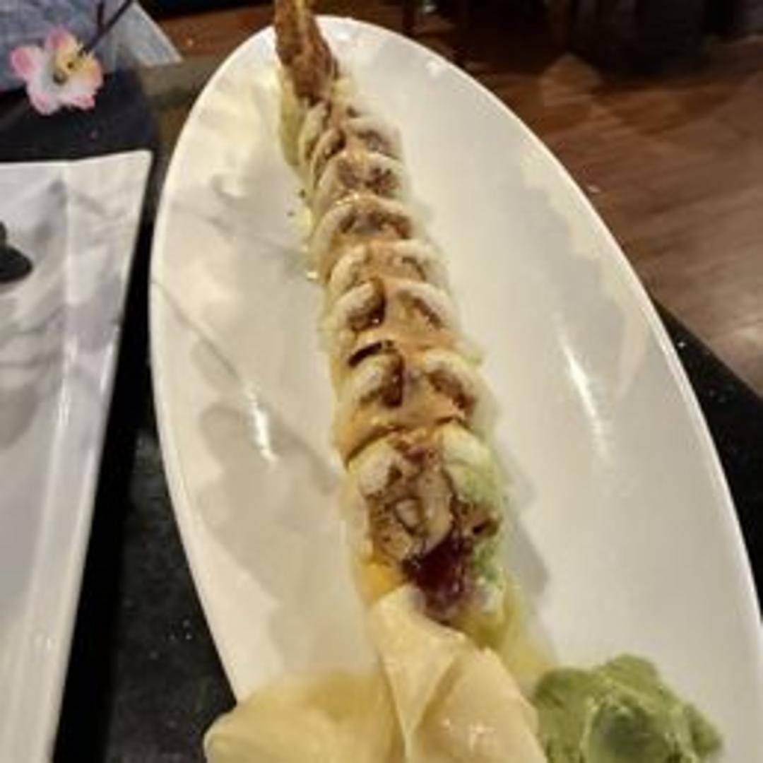 Shrimp tempura, cream cheese, cucumber, and avocado, rolled in nori seaweed with sushi rice. Topped with spicy mayo and eel sauce.